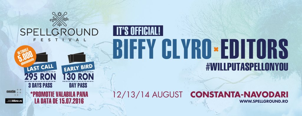 Spellground Festival pune stapanire pe litoral, din Constanta pana in Navodari, cu 3 scene, 17 artisti internationali si 44 de artisti romani, si cu inca doi headlineri: Editors si Biffy Clyro. Festivalul se desfasoara intre 12 si 14 august. Iar luni, 15 august, e zi libera nationala, ceea ce inseamna ca tu te poti bucura de cel mai lung weekend de pe litoralul Marii Negre la Spellground Festival.