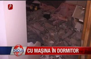 Un şofer din Arad a reuşit cascadoria vietii lui: a intrat cu maşina în dormitorul unor copii din vecini. Din fericire, camera era goală, pentru că cei doi fraţi erau plecaţi în vacanţă. Impactul a fost atât de puternic, încât maşina a rămas suspendată, pe geam, iar peretele a fost distrus.