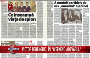 Actorul Victor Rebengiuc îşi povesteşte viaţa într-un interviu pe care îl puteţi citi în ediţia "Weekend Adevărul", care a apărut astăzi la chioşcuri. Artistul relatează despre cum a rămas orfan şi cum l-a marcat, în copilărie, absenţa tatălui, care a murit pe front, în bătălia de la Stalingrad, din 1942. De altfel, al doilea său prenume este George, după Gheorghe , cum îl chema pe tatăl său. "Vinovat" pentru talentul său de actor este chiar tatăl său, îşi aduce aminte artistul. Victor Rebengiuc a împlinit pe 10 februarie vârsta de 83 de anişi recunoaşte că ruptura de tatăl său l-a durut şi că mereu a simţit că din viaţa sa lipseşte ceva De asemenea, Adevărul continuă serialul "Apostolii Epocii de Aur" cu Nicolae Doicaru, cel mai longeviv şef al spionajului românesc. A servit Securitatea comunistă sub Gheorghiu-Dej şi sub Ceauşescu, iar apoi în 1989 poza în revoluţionar şi dizident.